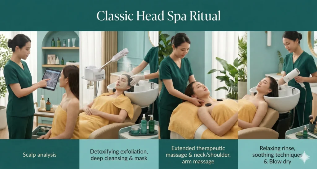 - Includes Everything in The Basic and Classic Head Spa Ritual